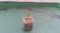 一人ずつペットボトルに植えたあと、縦割り団ごとに少し大きめの入れ物に田植えをしました。