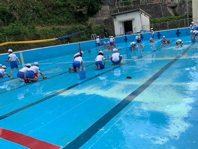 今年も6年生と5年生がプールをきれいにしてくれました。