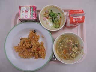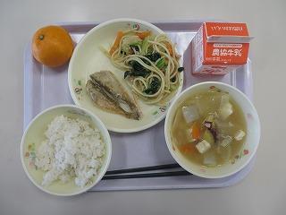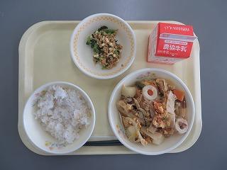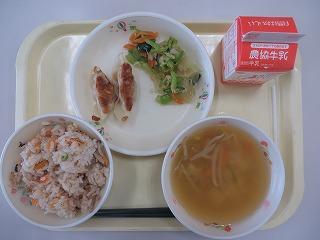 うるち米のごはんに、煮ておいた小豆を混ぜたごはん、正式には尾頭付きの魚ですが、子どもたちにも食べやすいいわしの竜田揚げ、紅白のなます、汁物には能登地方や福井県でもよく食べられている打ち豆を入れました。
