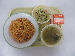 チキンライス コンソメスープ ごぼうサラダ 牛乳