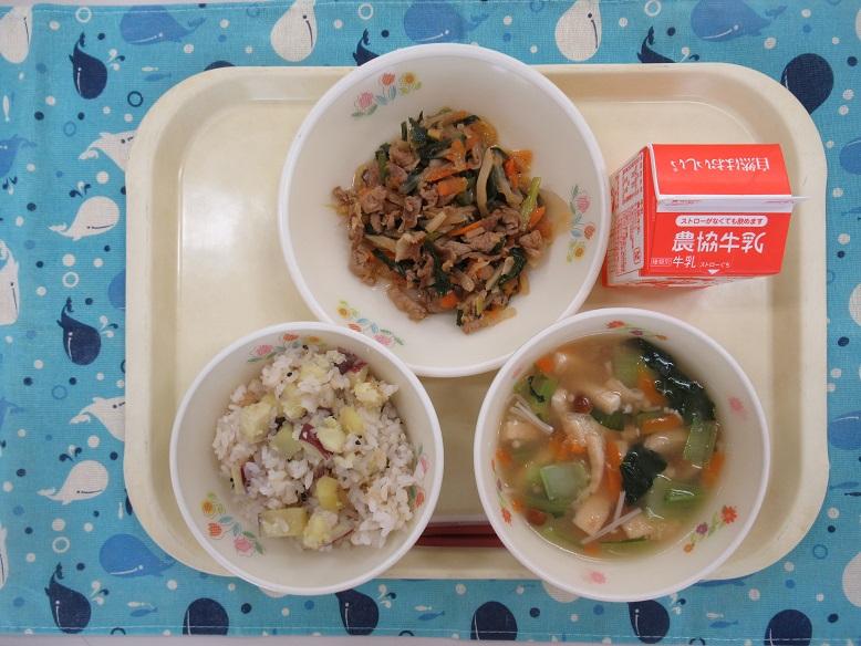 今日は地元産のさつまいもをたっぷり入れたごはんにしました。