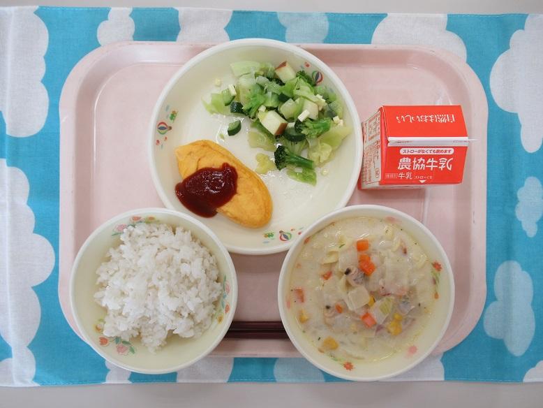 クラムチャウダーをひとくち食べて「おいしーい(^^)v」と教えてくれた子もいました。とても可愛かったです笑う