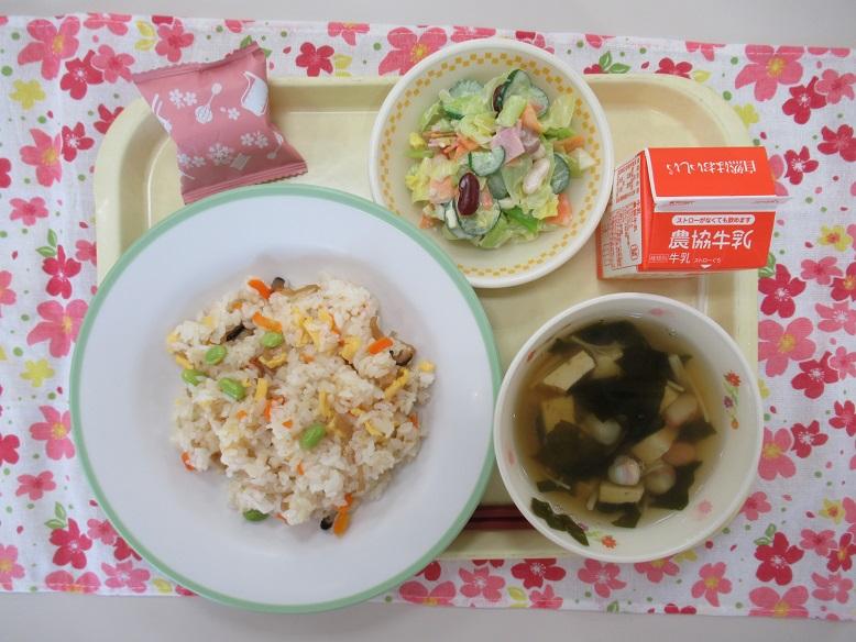 今日から6年生のいない、ちょっと淋しいランチタイムになりましたが、6年生が担当していた1年生の分の盛り付けを5年生が、献立の紹介は4年生が、お手伝いしてくれましたありがとう~