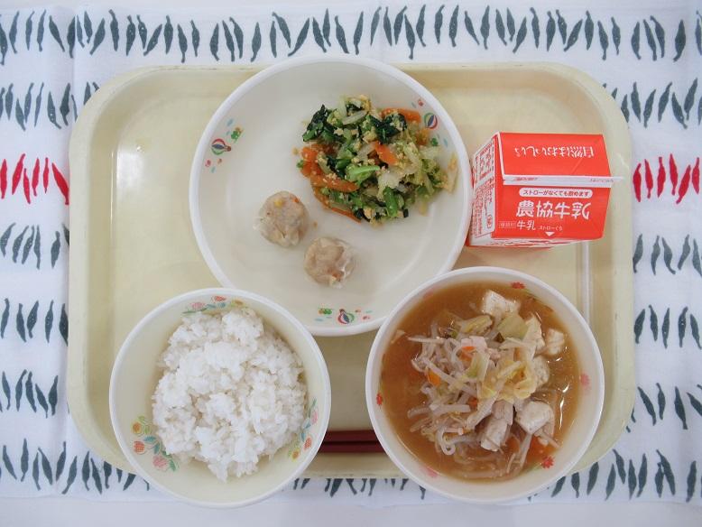 今日は、発酵食品を取り入れた給食ということで、キムチを入れたとり野菜にしました。