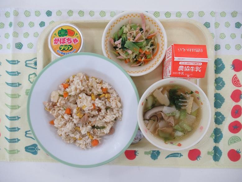 トマトとカレーの味で、子どもたちの好きな混ぜごはんだったので、早く食べ終わる子が多かったです