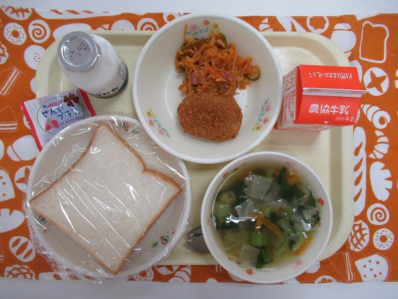 給食のパンは、町内の「能登パン」さんと「うわみ花月堂」さんに作っていただいています。