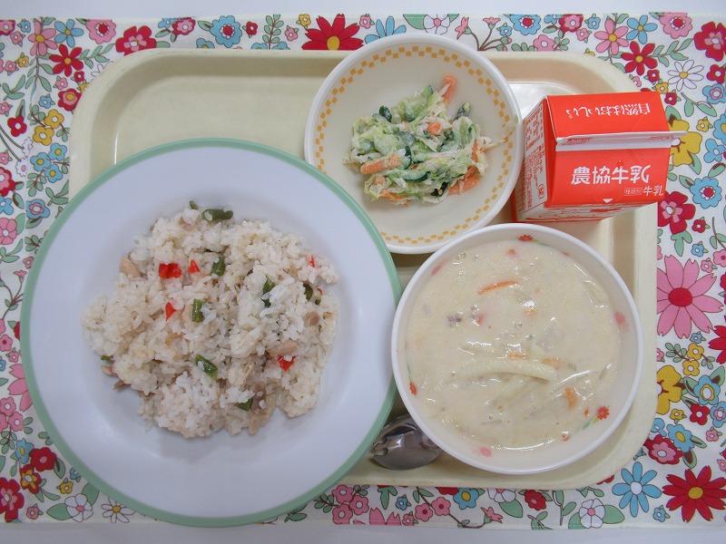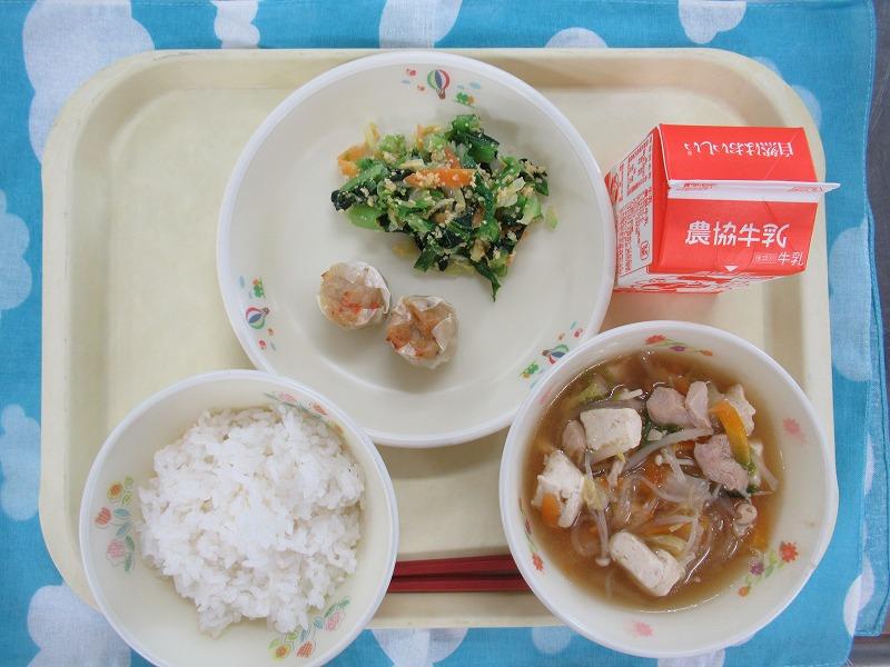 今日は小松菜、キャベツ、にんじんの和え物にたまごそぼろを加えて、菜の花に見立てた和え物を作りました。