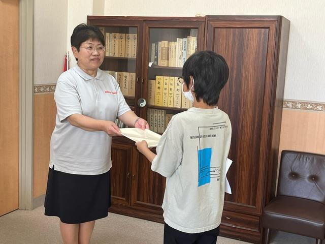 また、昼休みには、6年生の代表3名が、多額の寄付金の使い方について眞智教育長様に説明していました。