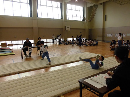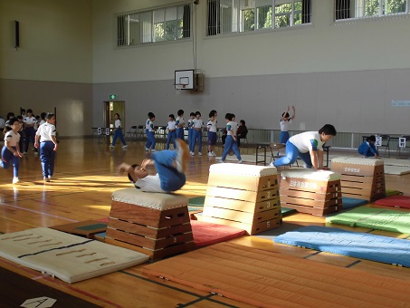器械運動交歓会では,能登町の4年生が集まり,お互いに技を披露しました。