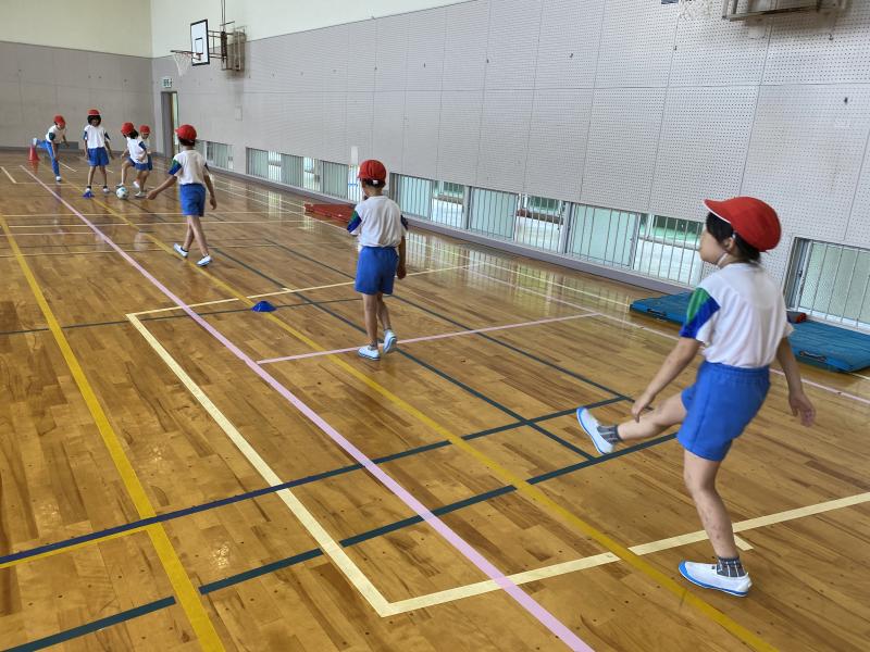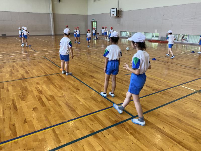 体育の時間に、サッカーボールをつかった運動を行いました。