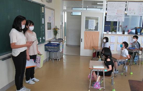 贈呈式では、6年生の児童代表2名が「マスクの需要が高まる中、たくさんのマスクをご寄付いただきありがとうございます。大切に使います。」「感染症予防をしっかりしていきます。」と挨拶しました。