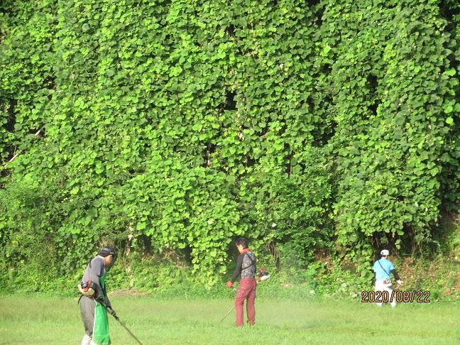 6時30分開始という早朝にもかかわらず、大勢の方が集まってくださいました。子どもたちが競技する運動場内はもちろんのこと、周辺も草刈り機で大変きれいにしていただきました。