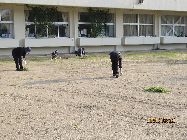8月22日(土)、「PTA親子奉仕作業」を行いました。9月8日(火)に予定されている運動会に向けての、運動場の除草作業です。