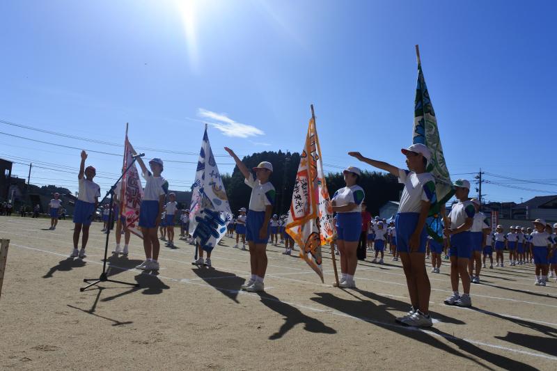 しかし、最上級生である6年生が、「はじける笑顔!創るぞ!宇出津っ子の運動会」のスローガンを掲げ、プログラムや縦割り種目の内容を見直しながら宇出津っ子が安心して取り組める運動会を考えてきました。