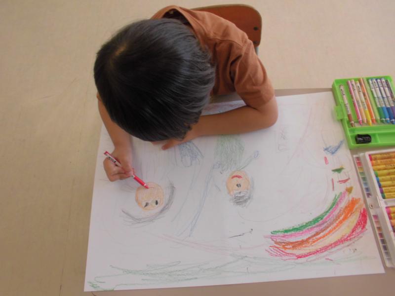 今日は8日にあった運動会のことを思い出しながら絵を描きました。「頑張ったことを描こう!」と決めると、1・2年生のダンスと水運びをテーマに選んでいました。運動会当日のことだけではなく、練習の中で一緒に頑張った同級生や引っ張ってくれていた上級生のことも思い出しながら描き進め完成できました!