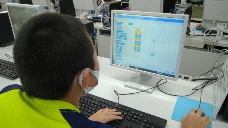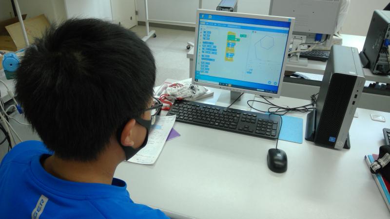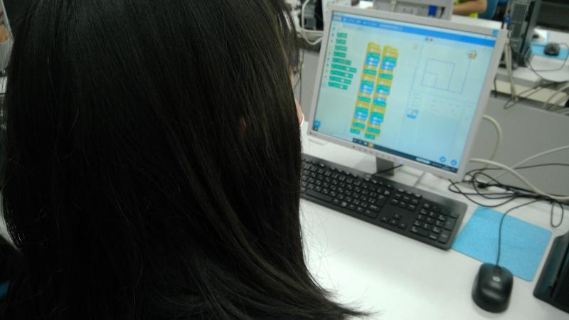 正三角形や正方形をはじめとした正多角形の拡大図や縮図を描くためにどのようなプログラムをすればよいのか試行錯誤しながら、入力していく姿が見られました。