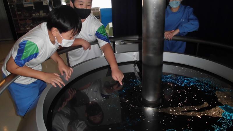 プラネタリウムでは、星の動きの様子について真剣に観察していました。星座が映し出されると「うわ~!すごい!」と歓声が挙がっていました。