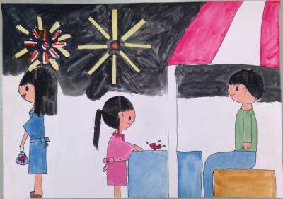家族と行った水族館、夏祭り、スポーツ大会など、楽しい思い出を表現しました。