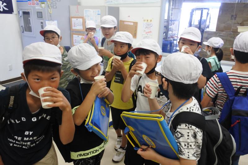 あくあす能登では、水深320mから海洋深層水を汲み上げていることや汲み上げた深層水を脱塩し、飲めるようにしていることなどを学びました。また、実際に脱塩水を飲ませていただいたり、貴重な塩を少しいただいて舐めたりもして、味覚も働かせながら見学することができました。
