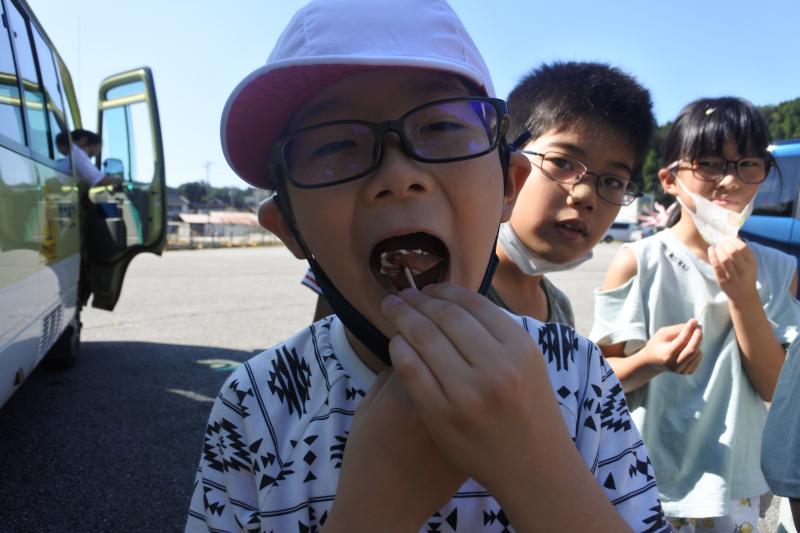 つくモールに戻ってくると、なんと、つくモールの職員の方が、3年生のために「イカ焼き」をふるまってくださいました!