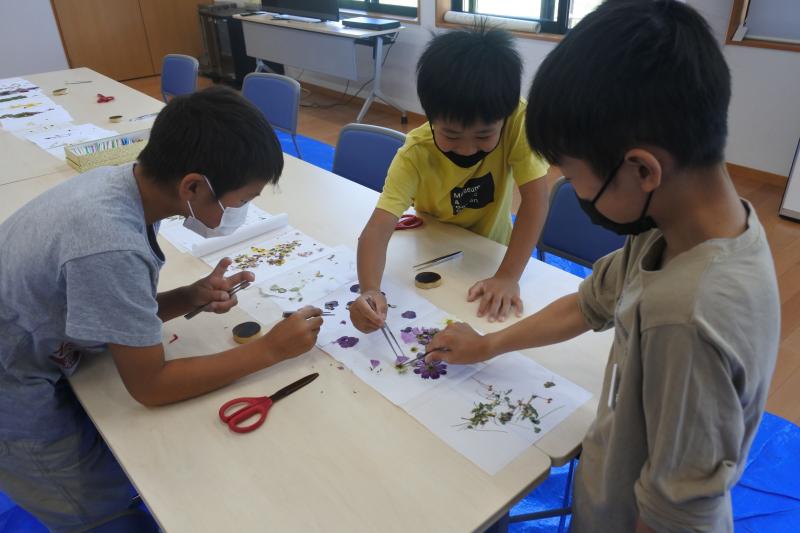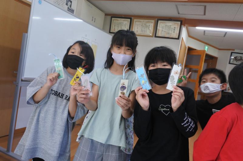 紙漉きと同時に、久田和紙を使った「しおり」も作らせていただきました。様々な種類の押し花の中からいくつか選んでラミネートし、オリジナルのしおりを作ることができました。できたしおりを「見て見て!」と友達同士で見せ合ったり、帰りのバスの中でも大切に手に持ったりする姿が微笑ましかったです。