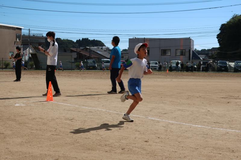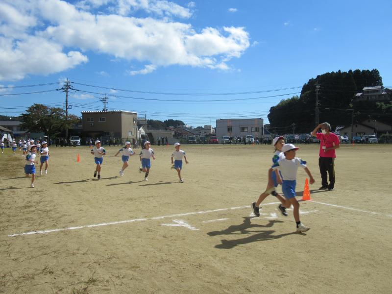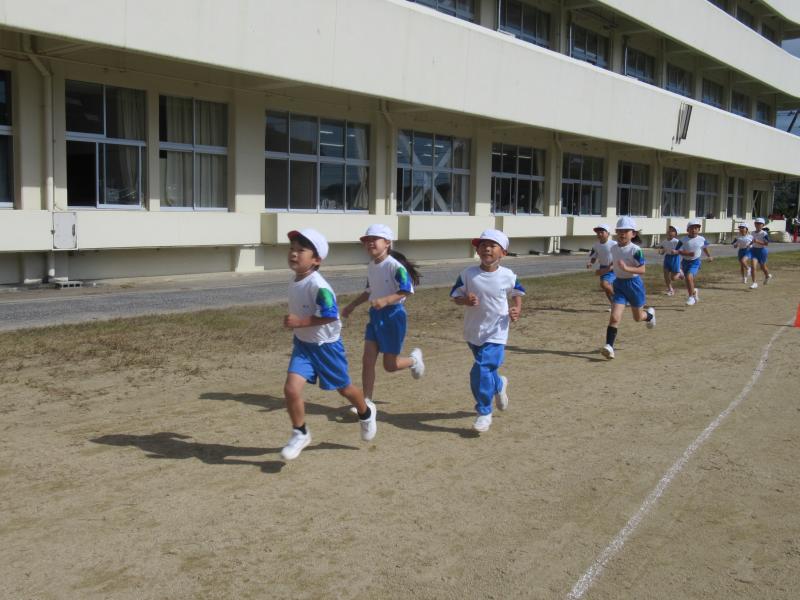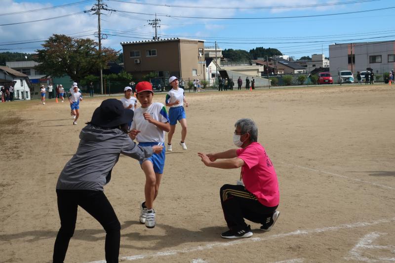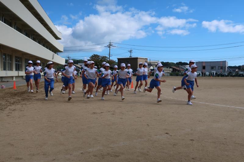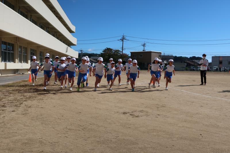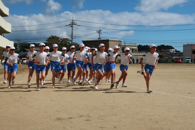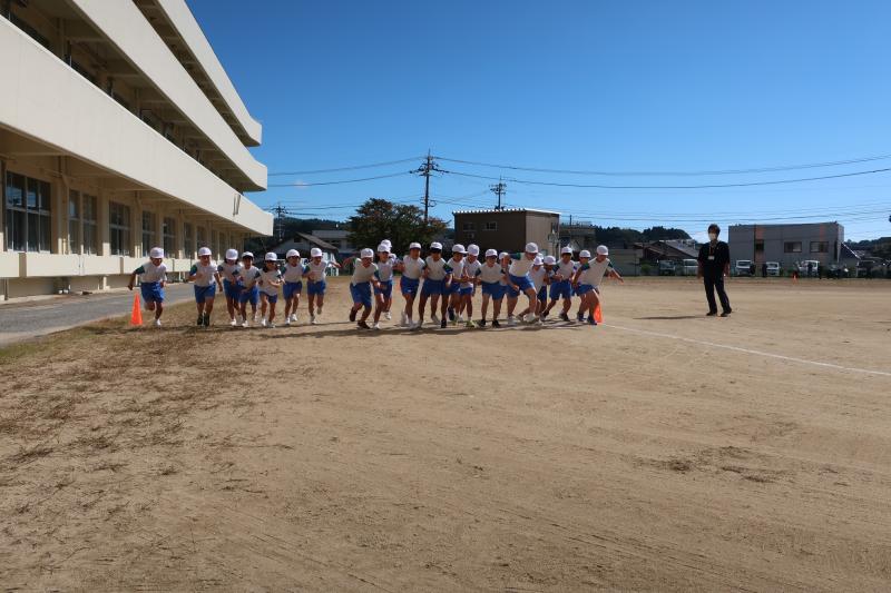 10月に入り、宇出津っ子ロードレースに向けて、グランドを走る宇出津っ子。