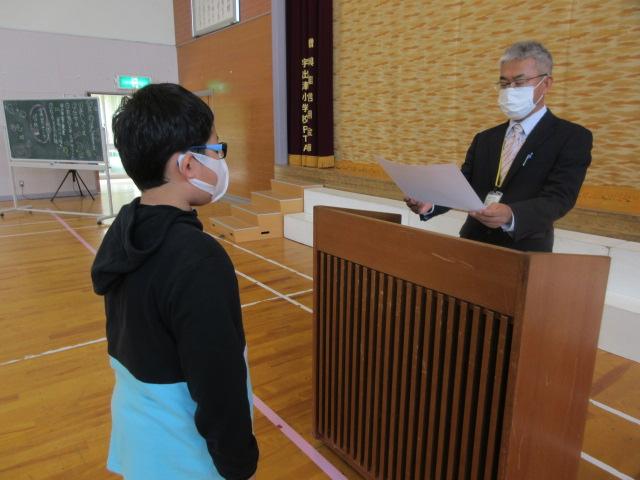 次に、後期委員会委員長任命式が行われ、各委員会の委員長や3~5年生の学級代表が全校児童に向け、決意表明をしました。宇出津っ子のためにできることをしたいという「熱い」思いが感じられる表明でした。