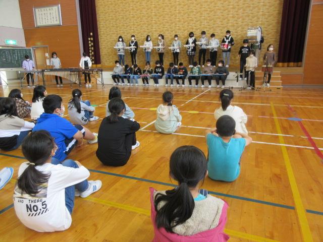最後に、6年生の学年発表がありました。6年生は、集会のテーマにふさわしい、あの有名な「情熱大陸」を演奏しました。アップテンポなリズムにも、27人の息をぴったりと合わせ、迫力のある演奏に仕上げていました。聞いている下級生もかっこいい6年生の姿を目に焼き付けていました。