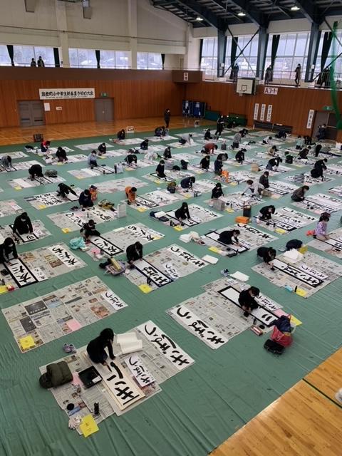 1月7日。柳田体育館で、能登町小中学生新春書き初め大会がありました。