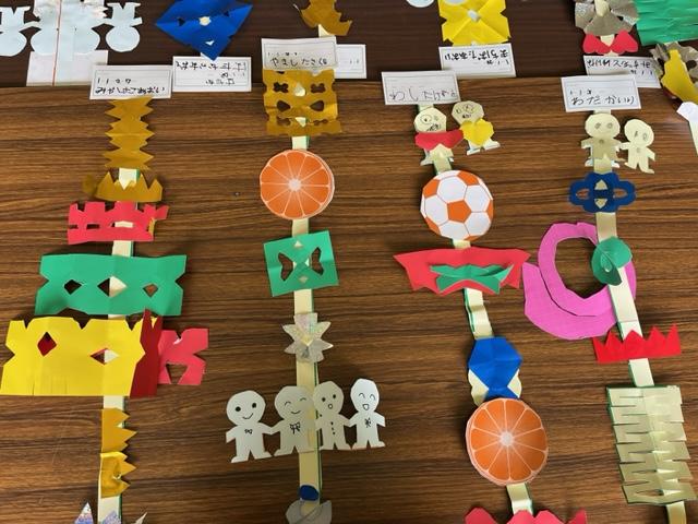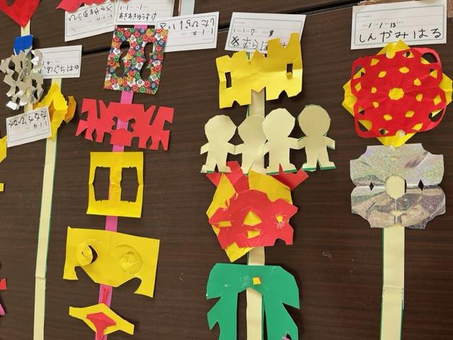 図工の時間に、ハサミやノリを使って作品を作っています。