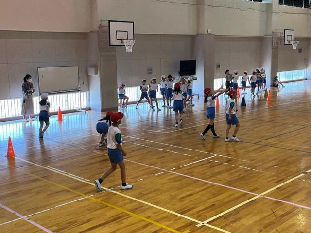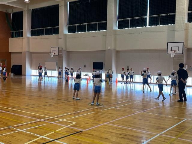 3年生の体育。4チームに分かれての『キックベースボール』?