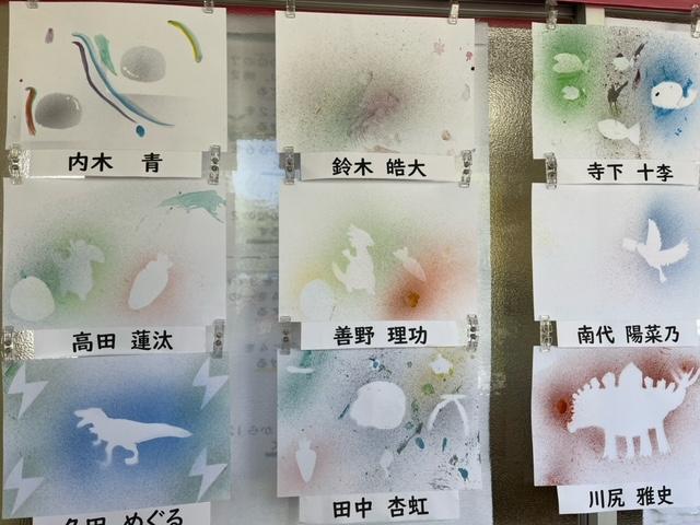 わり算を一生懸命勉強している4年生。廊下には、図工の作品が掲示されています。