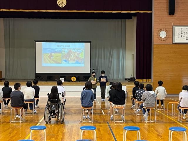 今日は、5年生と6年生が総合的な学習の発表を行いました。