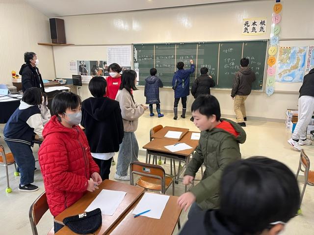 先生から言われた「へん」や「つくり」がある漢字を競い合って書いていました。