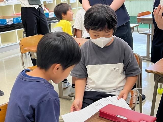 1年生は、初めての夏休みを迎えます。担任の先生から配付されたプリントをきちんと整理整頓できるようになりました。