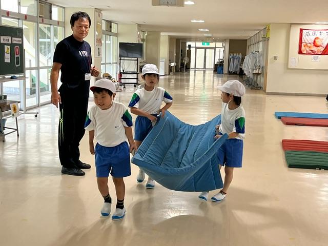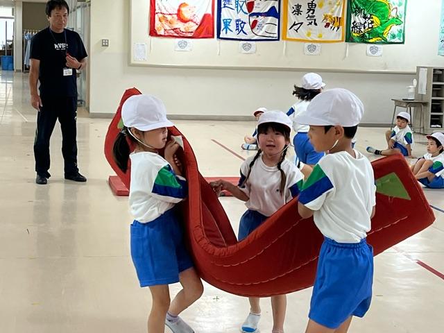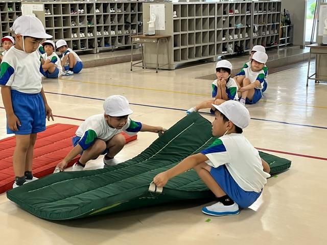 マットを出すのも片付けるのも、力を合わせてできるようになった1年生。