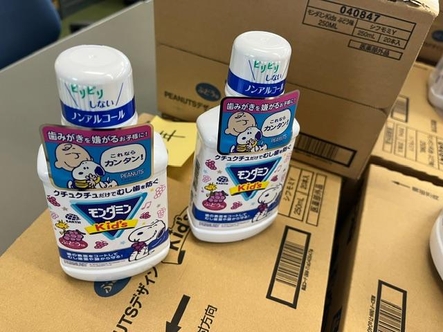 日本学校歯科医会より、歯みがき用の液を一人1つずついただきました。