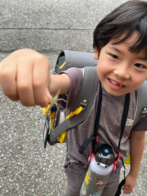 でも、「蜘蛛の巣に引っかかった!」というので、蜘蛛の巣から外してあげました。元気な1年生。1学期、校長にとっては、ドキドキな朝の時間になっています。
