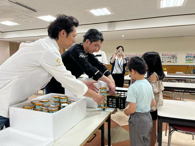 今日、マルガージェラートさんより、宇出津小学校の児童へジェラートのプレゼント!