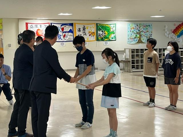 5年生と6年生の代表が受け取りました。