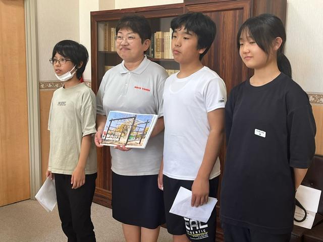 また、昼休みには、6年生の代表3名が、多額の寄付金の使い方について眞智教育長様に説明していました。