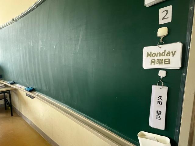 4年生の教室の黒板はきれいに拭かれ、もう9月2日にセットされていました。