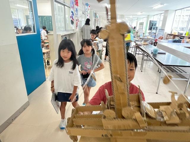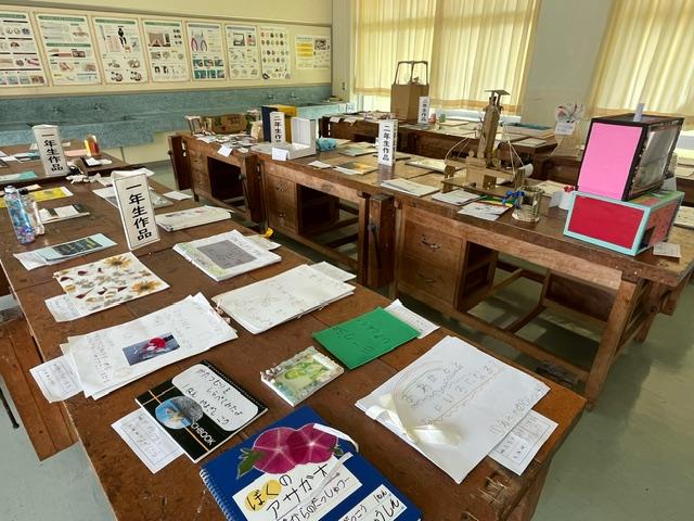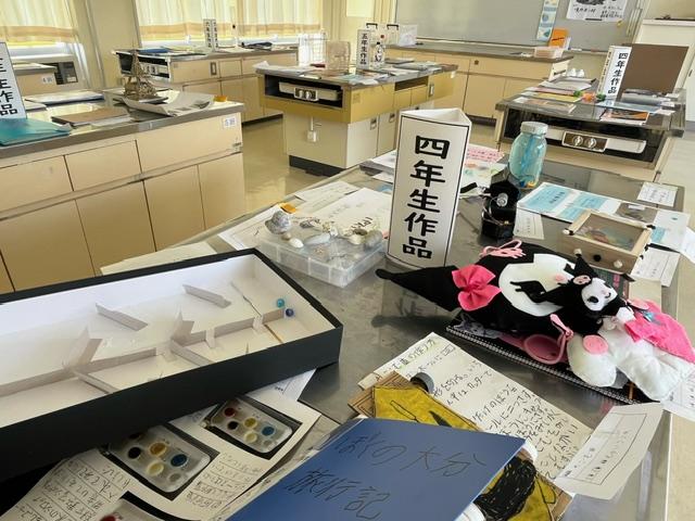 低学年は2F図工室で、高学年は3F家庭室に展示しています。