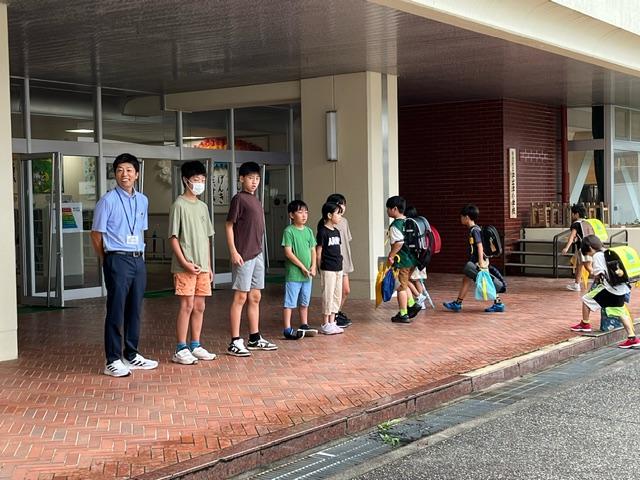 宇出津っ子は、そんな蝉の鳴き声に負けじと、大きな声で挨拶を交わしています。挨拶レベル向上!今日のグループは、とても大きな声で挨拶をしていました。