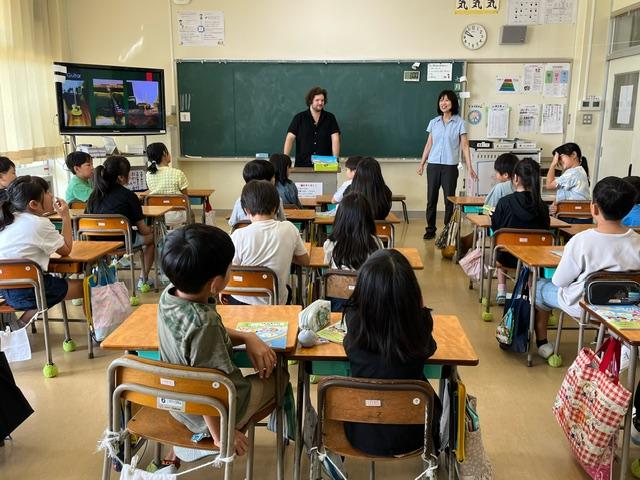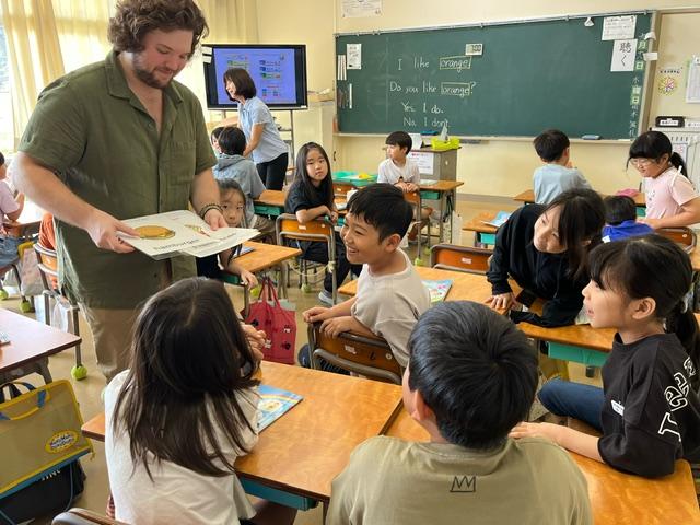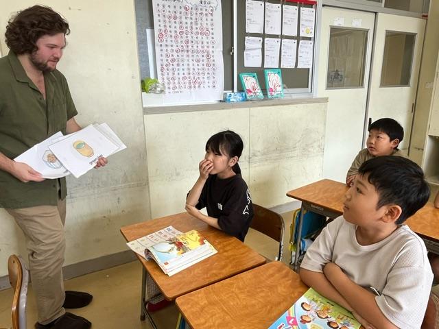 宇出津小学校は、アメリカのオハイオ州から来られたカルバン先生が担当なされます。