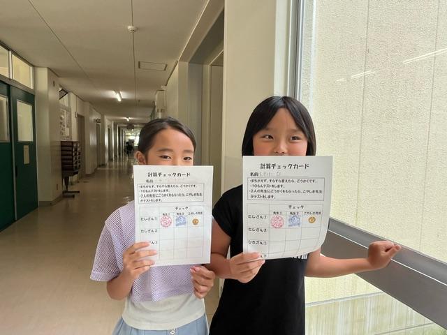 担任の先生はもちろん、職員室にいる先生、廊下を歩いている先生に、計算を聞いてもらっています。