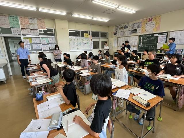 今日の4時間目、5年生は多くの先生方に囲まれ、国語の授業を行いました。