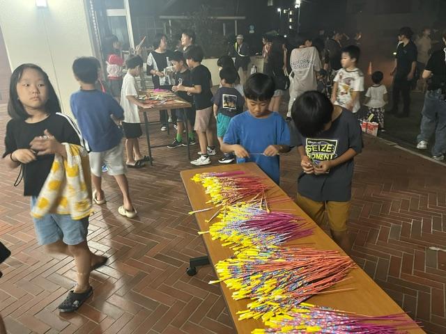 昨日、PTA主催の『花火をしよう』とボランティアの方による『プロジェクションマッピング』を実施しました。