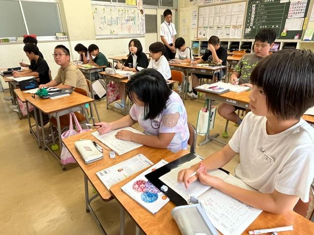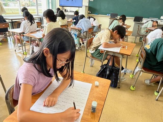 4年生は、静かに漢字テストに取り組んでいました。プリントには、たくさんの漢字を書くスペースがありました。とめ・はね・はらいなど、丁寧に書いていました。