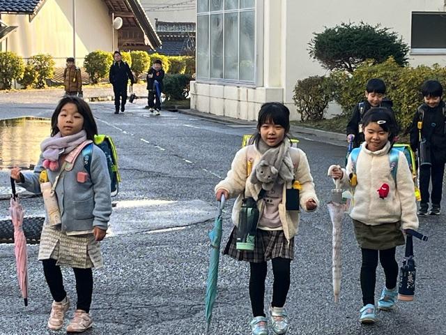 今朝は、とても寒い朝となりました。でも、宇出津っ子は元気!